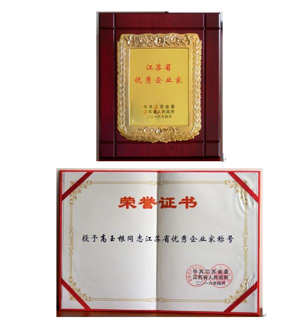 公司董事长高玉根先生被江苏省委省政府授予“江苏省优秀企业家”称号!