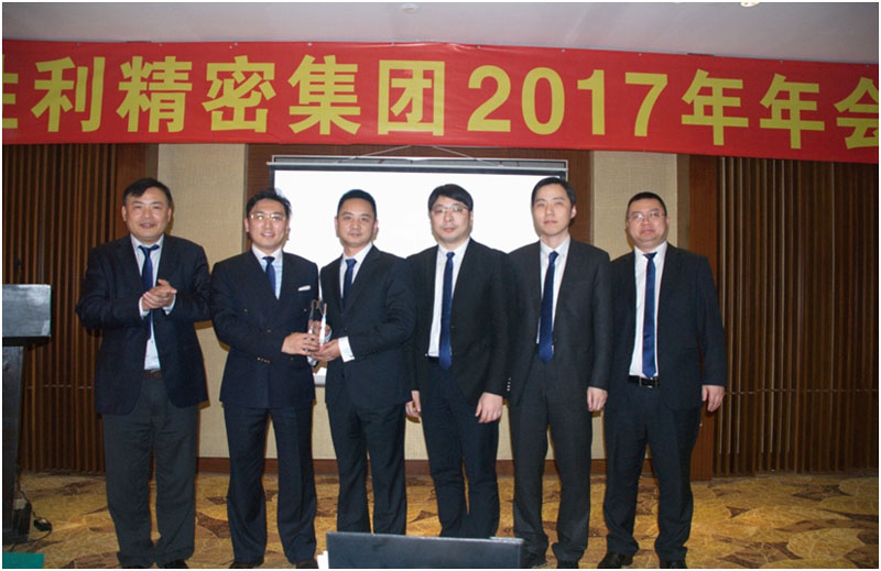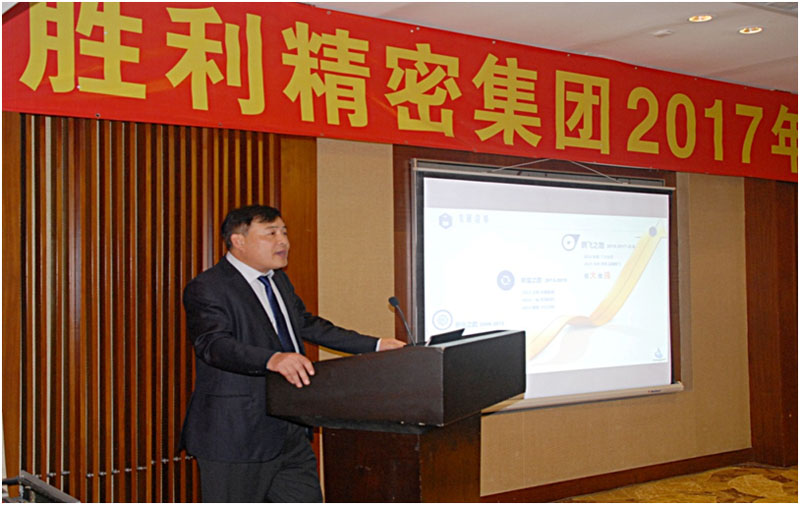 年会上,胜利精密董事长高玉根先生,回顾了胜利精密这十几年中走过的发展之路、转型之路,对公司即将踏上的腾飞之路,提出了要求与期望。高董阐述了胜利精密成为“全球领先的科技服务型企业集团”的愿景,着重介绍了“一个基石,两个驱动”的业务布局策略,提出了“持续高速成长,拥抱千亿市值”的总目标,要求胜利团队的每个成员,开拓创新,不断进取,为实现目标而努力。