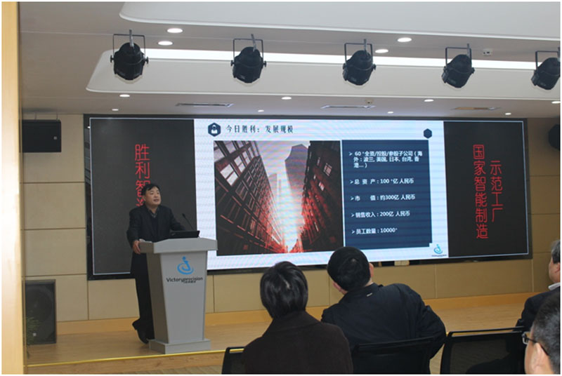 李晓红院士一行在胜利精密高玉根董事长的陪同下,参观了国家智能制造示范工厂。随后,高玉根董事长向李晓红院士介绍了公司与职业学校的合作情况,并表示:随着智能制造的一步步推进,需要大量的高技能人才,这些都离不开职业教育的发展。公司将继续与职业学校紧密合作,在学生定向培养、教师培训以及共建研发平台等领域进行新的探索。