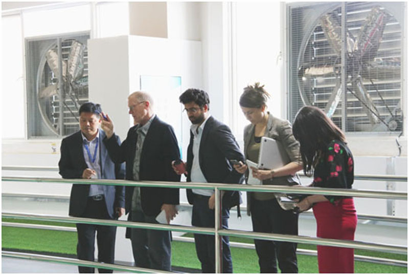 5月16日下午,由美国《独立新闻评论》,《芝加哥论坛报》,《纽约客》等8家新闻媒体代表团一行,在外交学会美大部王建调研员的陪同下,来到胜利精密智能制造工厂进行参观访问。